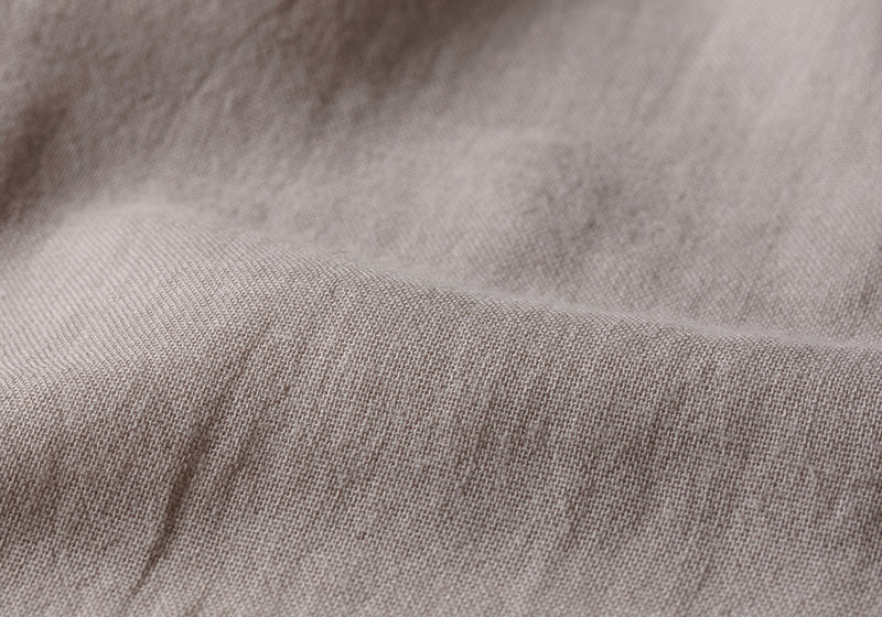 国際認証機関GOTSの認定を受けているオーガニックコットン糸を使用した、二重織りのガーゼ生地です。糸の芯までほぐれるように、ゆっくり時間と手間暇をかけて洗浄・乾燥することで、吸湿性も高まり、ふんわりとしたやわらかさを実感できる素材です。また使えば使うほど、糸が緩んで膨らみ、ふんわりとした風合いが増していきます。