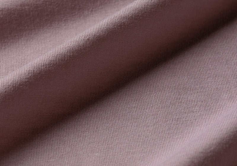 丈夫な30番手の綿糸で編み上げた、Tシャツなどでおなじみの天竺編みのコットンニット生地です。適度なストレッチがあるので、皺になりにくく、装着した際によくフィットします。